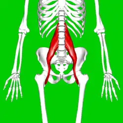 ![]() Position of psoas major (shown in red) | |