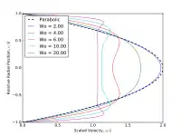 is the shape function.[5] It is important to notice that this formulation ignores the inertial effects. The velocity profile approximates a parabolic profile or a plug profile, for low or high Womersley numbers, respectively.