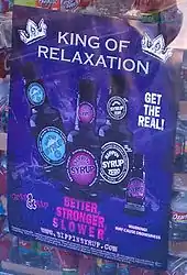 Several legal commercial products loosely based on the concept of "purple drank" are marketed in the United States. In June 2008, Innovative Beverage Group, a Houston, Texas-based company, released a beverage called "Drank". The commercial product contains no codeine or promethazine, but claims to "Slow Your Roll" with a combination of herbal ingredients such as valerian root and rose hips as well as the hormone melatonin.[37][38] Similar "anti-energy" or relaxation drinks on the commercial market use the names "Purple Stuff", "Sippin Syrup", and "Lean".[39][40][41]