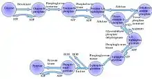 Aerobic respiration is the process of converting energy in the form of glucose into ATP, the primary currency of energy used by cells to fuel biochemical processes and support growth. The first phase of respiration is glycolysis, a series of ten biochemical reactions in the cytoplasm that convert glucose into pyruvate. Pyruvate is then transported into mitochondria, where it is converted by the pyruvate dehydrogenase complex into acetyl-CoA, the starting substrate of the Krebs cycle. When PDC activity is reduced or abolished by mutation, pyruvate levels rise. Excess pyruvate is then converted into lactic acid by lactate dehydrogenase. Lactic acid enters the blood stream, causing acidification in a condition known as lactic acidosis.