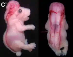 | Craniorachischisis in a mouse embryo at day 18.5 | |