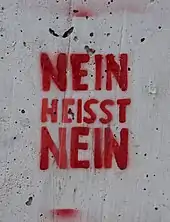 Discussion of rape has long been a taboo in Germany, with victims, women's rights organizations, and politicians struggling for support on issues pertaining to sexual abuse and violence.[30][31] There have been recent political discussions of reforming related laws so that they comply with the Istanbul convention, which requires all signatories to ensure that engaging in any non-consensual act of a sexual nature is criminalized.[32][33]