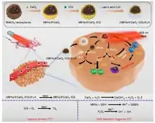 The scheme of fabrication process and therapeutic mechanism of thermo-responsive (MSNs@CaO2-ICG)@LA NPs for synergistic CDT/PDT with H2O2/O2 self-supply and GSH depletion.