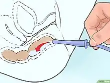 Insertion of an enema nozzle as it breeches the anal sphincter.