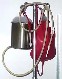 Enema equipment for introducing a large amount of fluid into the colon via the rectum.