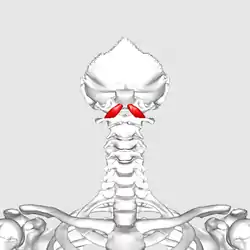 ![]() Anterior view of rectus capitis anterior muscle. Skull has been removed (except for occipital bone) | |