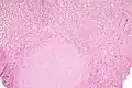 | Micrograph of a renal medullary fibroma (bottom of image). Renal tubules are seen at the top of the image. H&E stain. | |