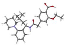 Repaglinide is an antidiabetic drug in the class of medications known as meglitinides, and was invented in 1983. Repaglinide is an oral medication used in addition to diet and exercise for blood sugar control in type 2 diabetes mellitus.[1] The mechanism of action of repaglinide involves promoting insulin release from β-islet cells of the pancreas; like other antidiabetic drugs, a main side effect concern is hypoglycemia.[1] It is sold by Novo Nordisk under the name of Prandin in the United States, GlucoNorm in Canada, Surepost in Japan, Repaglinide in Egypt by EIPICO, and NovoNorm elsewhere. In Japan it is produced by Dainippon Sumitomo Pharma.[2]