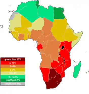 HIV/AIDS in Africa is a major public health problem. Sub-Saharan Africa is the worst affected world region for prevalence of HIV, especially among young women. 90% of the children in the world living with HIV are in sub-Saharan Africa.[77]