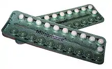 There are many types of contraceptives. One type of contraceptive includes barrier methods.[26] One barrier method includes condoms for males and females.[26] Both types stop sperm from entering the woman's uterus, thereby preventing pregnancy from occurring.[26] Another type of contraception is the birth control pill, which stops ovulation from occurring by combining the chemicals progestin and estrogen.[26] Many women use this method of contraception, however they discontinue using it equally as much as they use it.[27] One reason for this is because of the side effects that may occur from using the pill, and because some health care providers do not take women's concerns about negative side effects seriously.[27] The use of the birth control pill is common in western countries, and two forms of combined oral contraceptives are on the World Health Organization's List of Essential Medicines, the most important medications needed in a basic health system.[28]