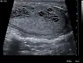 The condition can be detected with ultrasonography. Cystic lesions us usually found at the mediastinum testis with elongated shaped lesion displacing the mediastinum.[1] It is commonly associated with epididymal abnormalities, such as spermatocele, epididymal cyst, and epididymitis. The condition shares a common location with cystic dysplasia of the testis and intratesticular cysts. Unlike cystic neoplasms, they don't present specific tumor markers.[3] Another distinguishing feature is that tubular ectasia of the testes are confined only to the mediastinum, unlike testicular cancer such as cystic teratoma of testis which spreads throughout the testis.[1]