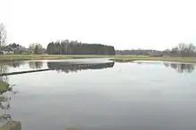 A retention basin, sometimes called a wet pond, wet detention basin or stormwater management pond (SWMP), is an artificial pond with vegetation around the perimeter, and includes a permanent pool of water in its design.[1][2][3] It is used to manage stormwater runoff to prevent flooding and downstream erosion, and improve water quality in an adjacent river, stream, lake or bay.