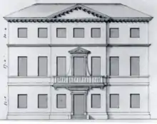 Richmond House was destroyed by a fire on 21 December 1791,[7] and was not rebuilt by the 3rd Duke or his descendants. The library and art collection were rescued from the fire and were removed to Goodwood House, where the surviving two wings were built (to the designs of James Wyatt) to re-house them.[8]