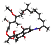 The first information on the biosynthesis of the rifamycins came from studies using the stable isotope Carbon-13 and NMR spectroscopy to establish the origin of the carbon skeleton. These studies showed that the ansa chain was derived from acetate and propionate, in common with other polyketide antibiotics. The naphthalenic chromophore was shown to derive from a propionate unit coupled with a seven carbon amino moiety of unknown origin. The general scheme of biosynthesis starts with the uncommon starting unit, 3-amino-5-hydroxybenzoic acid (AHBA), via type I polyketide pathway (PKS I) in which chain extension is performed using 2 acetate and 8 propionate units.[11] AHBA is believed to have originated from the Shikimate pathway, however this was not incorporated into the biosynthetic mechanism. This is due to the observation that 3 amino-acid analogues converted into AHBA in cell-free extracts of A. mediterranei.[12]