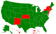 In May 2014, Colorado became the first state to pass a right-to-try law.[4] As of August 2018, 41 states had enacted such laws: Alabama, Alaska, Arizona, Arkansas, California, Colorado, Connecticut, Florida, Georgia, Idaho, Iowa, Illinois, Indiana, Kentucky, Louisiana, Maine, Maryland, Michigan, Minnesota, Mississippi, Missouri, Montana, Nebraska, Nevada, New Hampshire, North Carolina, North Dakota, Ohio, Oklahoma, Oregon, Pennsylvania, South Carolina, South Dakota, Tennessee, Texas, Utah, Virginia, Washington, West Virginia, Wisconsin, and Wyoming.[3][5][6][7]