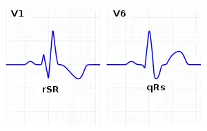 - There should be a terminal R wave in lead V1 (often called "R prime," and denoted by R, rR', rsR', rSR', or qR).