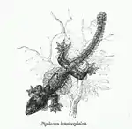 In the active mechanism, skeletal supports and muscles run through the patagia of lizards. The skeletal supports and muscle erect the flight membrane and control the gliding using the patagia. Most of the lizards that exhibit this active gliding mechanism are agamine lizards such lizards in the genus Draco. For the passive mechanism of gliding in lizards, the patagia is unfurled by air pressure alone. The patagia of the passive mechanism differs from patagia of the active mechanism; there is the lack of skeleton support and musculature in patagia of the gliding lizards with the passive gliding mechanism . The passive mechanism of gliding is seen in smaller lizards such as the geckos of the genus Ptychozoon. For the passive mechanism of gliding, body movements are believed to control the descent of the gliding lizard.[15]