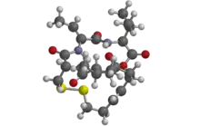 Romidepsin, also known as Istodax, is an anticancer agent used in cutaneous T-cell lymphoma (CTCL) and other peripheral T-cell lymphomas (PTCLs). Romidepsin is a natural product obtained from the bacterium Chromobacterium violaceum, and works by blocking enzymes known as histone deacetylases, thus inducing apoptosis.[1] It is sometimes referred to as depsipeptide, after the class of molecules to which it belongs. Romidepsin is branded and owned by Gloucester Pharmaceuticals, now a part of Celgene.[2]