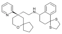 SHR9352 is a drug which acts as a potent and selective biased agonist at the μ-opioid receptor, selective for activation of the G-protein signalling pathway over β-arrestin 2 recruitment. It was structurally derived from oliceridine by replacing the benzylic side chain with a cyclised group, although only some compounds in the series retained the desired biased agonist profile, with some derivatives such as compound 12 being potent, unbiased μ-opioid full agonists.[1]