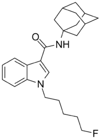 STS-135 (N-(adamantan-1-yl)-1-(5-fluoropentyl)-1H-indole-3-carboxamide, also called 5F-APICA) is a designer drug offered by online vendors as a cannabimimetic agent. The structure of STS-135 appears to use an understanding of structure-activity relationships within the indole class of cannabimimetics, although its design origins are unclear.[1] STS-135 is the terminally-fluorinated analogue of SDB-001, just as AM-2201 is the terminally-fluorinated analogue of JWH-018, and XLR-11 is the terminally-fluorinated analogue of UR-144. STS-135 acts a potent cannabinoid receptor agonist in vitro, with an EC50 of 51 nM for human CB2 receptors, and 13 nM for human CB1 receptors.[2] STS-135 produces bradycardia and hypothermia in rats at doses of 1–10 mg/kg, suggesting cannabinoid-like activity.[2]