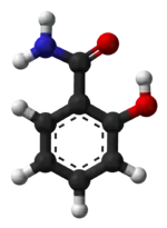 Salicylamide (o-hydroxybenzamide or amide of salicyl) is a non-prescription drug with analgesic and antipyretic properties. Its medicinal uses are similar to those of aspirin.[1] Salicylamide is used in combination with both aspirin and caffeine in the over-the-counter pain remedy PainAid. It was also an ingredient in the over-the-counter pain remedy BC Powder but was removed from the formulation in 2009, and Excedrin used the ingredient from 1960 to 1980 in conjunction with aspirin, acetaminophen, and caffeine. It was used in later formulations of Vincent's powders in Australia as a substitute for phenacetin.
