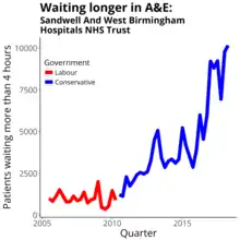 The trust planned to cut around 1,400 posts between 2015 and 2020 in order to reduce pay costs by £16.1m, though it is recruiting more staff including A&E consultants and nurses.[18]