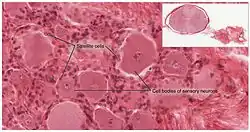 ![]() Satellite cells surround the cell bodies of sensory neurons | |