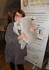 Public health worker Stefania Lanzia using a soft toy scabies mite to publicise the condition in a 2016 campaign