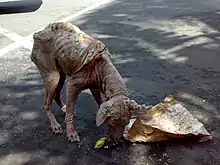 A street dog in Bali, Indonesia, suffering from sarcoptic mange.