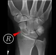 A condition called scapholunate instability can occur when the scapholunate ligament (connecting the scaphoid to the lunate bone) and other surrounding ligaments are disrupted. In this state, the distance between the scaphoid and lunate bones is increased.[1]:180