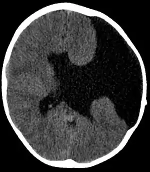 | Axial CT scan showing schizencephaly in a 6-year-old child | |