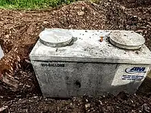 A septic tank and drainfield combination is a fairly common type of on-site sewage facility in the Western world. OSSFs account for approximately 25% of all domestic wastewater treatment in the US. Onsite sewage facilities may also be based on small-scale aerobic and biofilter units, membrane bioreactors or sequencing batch reactors. These can be thought of as scaled down versions of municipal sewage treatment plants, and are also known as "package plants."[1]