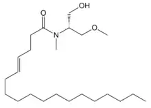 Serinolamide A is a naturally occurring eicosanoid derivative related to anandamide, which has been isolated from the marine cyanobacteria Lyngbya majuscula and related species in the Oscillatoria family. Testing established that serinolamide A is an active cannabinoid agonist with moderate potency, having a Ki of 1300 nM at CB1 and five fold selectivity over the related CB2 receptor.[1]