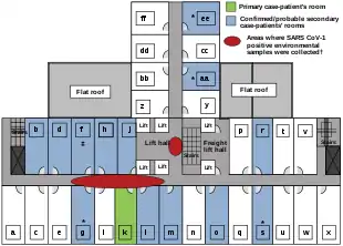 Another larger cluster of cases in Hong Kong centred on the Amoy Gardens housing estate. Its spread is suspected to have been facilitated by defects in its bathroom drainage system that allowed sewer gases including virus particles to vent into the room. Bathroom fans exhausted the gases and wind carried the contagion to adjacent downwind complexes. Concerned citizens in Hong Kong worried that information was not reaching people quickly enough and created a website called sosick.org, which eventually forced the Hong Kong government to provide information related to SARS in a timely manner.[49] The first cohort of affected people were discharged from hospital on 29 March 2003.[50]