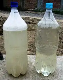 The International Water Management Institute has worked in India, Pakistan, Vietnam, Ghana, Ethiopia, Mexico and other countries on various projects aimed at assessing and reducing risks of wastewater irrigation. They advocate a ‘multiple-barrier’ approach to wastewater use, where farmers are encouraged to adopt various risk-reducing behaviours. These include ceasing irrigation a few days before harvesting to allow pathogens to die off in the sunlight, applying water carefully so it does not contaminate leaves likely to be eaten raw, cleaning vegetables with disinfectant or allowing fecal sludge used in farming to dry before being used as a human manure.[18] The World Health Organization has developed guidelines for safe water use.
