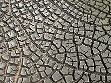 Drying beds are typically composed of four layers consisting of gravel and sand. The first layer is coarse gravel that is 15 to 20 centimeters thick. Followed by fine gravel that is 10 centimeters thick. The third layer is sand that can be between 10 and 15 centimeters and serves as the filter between the sludge and gravel. Sludge dries up and water percolates to the first layer that is collected at the drainage pipe that is beneath all layers.[17]