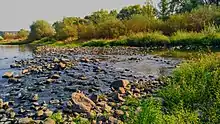 As rainfall travels over roofs and the ground, it may pick up various contaminants including soil particles and other sediment, heavy metals, organic compounds, animal waste, and oil and grease. Some jurisdictions require stormwater to receive some level of treatment before being discharged directly into waterways. Examples of treatment processes used for stormwater include retention basins, wetlands, buried vaults with various kinds of media filters, and vortex separators (to remove coarse solids).[5]