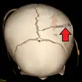 | An intraparenchymal bleed with overlying skull fracture from shaken baby syndrome | |