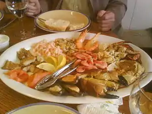 | Shellfish (shrimp, crab legs, mussels) on platter | |