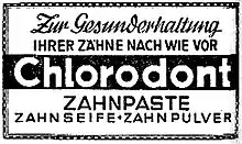 - Kalodont: discontinued in 1981,[18] it was originally produced by F. A. Sarg’s Sohn & Co. from Vienna and first sold in Austria-Hungary in 1887. It later became widely distributed, in 34 other countries, and obtained a near-monopoly status that caused the word "kalodont" to become synonymous with the word for "tooth paste" in South Slavic languages. It was also available in Russia in 1927.[19]