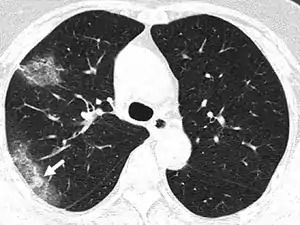 Silent hypoxia (also happy hypoxia)[1][2] is hypoxia that does not coincide with shortness of breath.[3][4][5] It is known to be a complication of coronavirus disease 2019.[6][7] It is speculated that this condition is caused by SARS-CoV-2 affecting the blood flow of the lungs' airways, in addition to the blood vessels within the lungs, which must match in order to allow proper airflow, but not affecting them enough to cause shortness of breath.[8][9] It is also speculated that silent hypoxia may be caused by the formation of small blood clots within the lungs.[10][11][12] It has been shown that the breathing rates of patients with COVID-19 gradually increase, which in turn leads to silent hypoxia.[13] It has also been shown that COVID-19 patients experience lesser levels of shortness of breath after exercise than non-COVID-19 patients.[14] The condition is also known to be caused by walking pneumonia[15] and altitude sickness.[16][17][18]