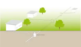 Simplified sewerage, also called small-bore sewerage, is a sewer system that collects all household wastewater (blackwater and greywater) in small-diameter pipes laid at fairly flat gradients. Simplified sewers are laid in the front yard or under the pavement (sidewalk) or - if feasible - inside the back yard, rather than in the centre of the road as with conventional sewerage. It is suitable for existing unplanned low-income areas, as well as new housing estates with a regular layout.[2] It allows for a more flexible design.[1] With simplified sewerage it is crucial to have management arrangements in place to remove blockages, which are more frequent than with conventional sewers. It has been estimated that simplified sewerage reduces investment costs by up to 50% compared to conventional sewerage.