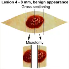 - For number of slices and coverage of lesions, as well as including sections from each edge in case of diffuse border. - "Dermatopathology Grossing Guidelines" (PDF). University of California, Los Angeles. Retrieved 2019-10-23.