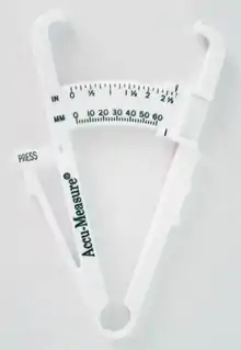 The skinfold estimation methods are based on a skinfold test, also known as a pinch test, whereby a pinch of skin is precisely measured by calipers, also known as a plicometer,[15] at several standardized points on the body to determine the subcutaneous fat layer thickness.[16][17] These measurements are converted to an estimated body fat percentage by an equation. Some formulas require as few as three measurements, others as many as seven. The accuracy of these estimates is more dependent on a person's unique body fat distribution than on the number of sites measured. As well, it is of utmost importance to test in a precise location with a fixed pressure. Although it may not give an accurate reading of real body fat percentage, it is a reliable measure of body composition change over a period of time, provided the test is carried out by the same person with the same technique.