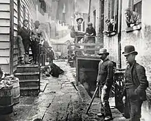 This passage was widely quoted in the national press,[25] leading to the popularization of the word slum to describe bad housing.[23][26]
