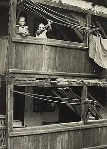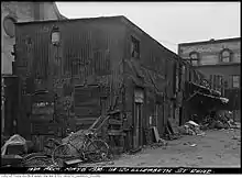 Slums are often associated with Victorian Britain, particularly in industrial English towns, lowland Scottish towns and Dublin City in Ireland. Friedrich Engels described these British neighborhoods as "cattle-sheds for human beings".[19] These were generally still inhabited until the 1940s, when the British government started slum clearance and built new council houses.[20] There are still examples left of slum housing in the UK, but many have been removed by government initiative, redesigned and replaced with better public housing. In Europe, slums were common.[21][22] By the 1920s it had become a common slang expression in England, meaning either various taverns and eating houses, "loose talk" or gypsy language, or a room with "low going-ons". In Life in London Pierce Egan used the word in the context of the "back slums" of Holy Lane or St Giles. A footnote defined slum to mean "low, unfrequent parts of the town". Charles Dickens used the word slum in a similar way in 1840, writing "I mean to take a great, London, back-slum kind walk tonight". Slum began to be used to describe bad housing soon after and was used as alternative expression for rookeries.[23] In 1850 the Catholic Cardinal Wiseman described the area known as Devil's Acre in Westminster, London as follows: