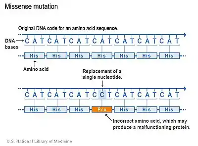 SLOS is an autosomal recessive disorder.[6] More than 130 different types of mutations have been identified.[2] Missense mutations (single nucleotide change resulting in a code for a different amino acid) are the most common, accounting for 87.6% of the SLOS spectrum. These typically reduce the function of the enzyme but may not inhibit it completely. Much depends on the nature of the mutation (i.e. which amino acid is replaced and where). Null mutations are much less common, these mutations produce either a completely dysfunctional enzyme, or no enzyme at all.[6] Thus, missense mutations may be more common overall because they are less lethal than nonsense mutations; nonsense mutations may simply result in spontaneous abortion.
