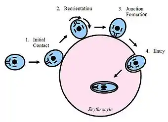Figure 3 - A representation of the steps involved in the entry of Plasmodium falciparum into an erythrocyte.