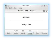 Most spaced repetition software (SRS) is modeled after the manual style of learning with physical flashcards: items to memorize are entered into the program as question-answer pairs. When a pair is due to be reviewed, the question is displayed on screen, and the user must attempt to answer. After answering, the user manually reveals the answer and then tells the program (subjectively) how difficult answering was. The program schedules pairs based on spaced repetition algorithms. Without a computer program, the user has to schedule physical flashcards; this is time-intensive and limits users to simple algorithms like the Leitner system.[17]