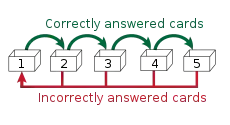 The Leitner system is a widely used method of efficiently using flashcards that was proposed by the German science journalist Sebastian Leitner in the 1970s. It is a simple implementation of the principle of spaced repetition, where cards are reviewed at increasing intervals.